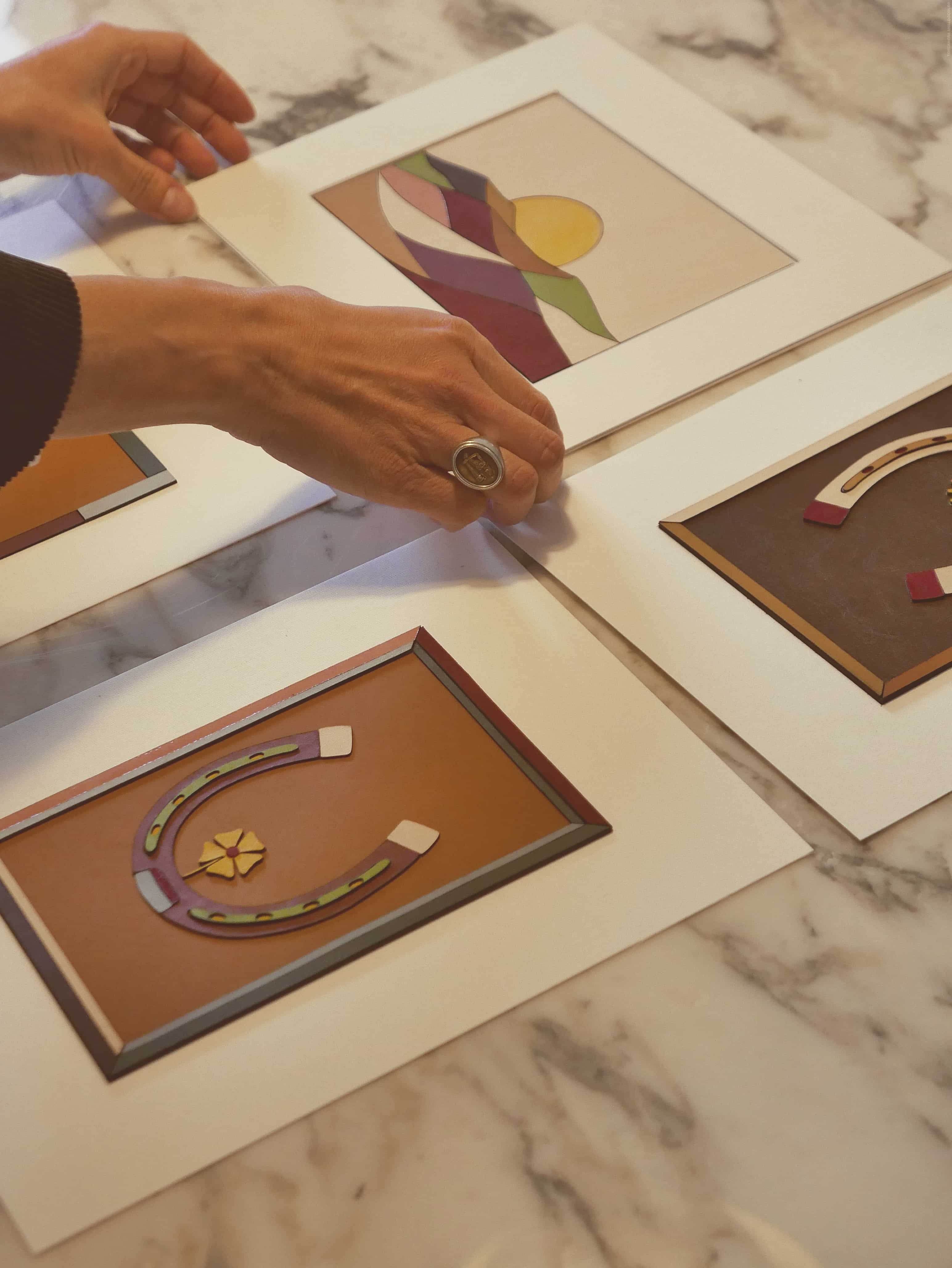 Two of them draw from her world: abstract, expansive landscapes that evoke the wide-open American West and the pull of elsewhere, inviting each viewer to find their own story within them. The other two dive into Socque’s Western DNA: a stylized horseshoe, symbolizing protection, grounding and… luck.