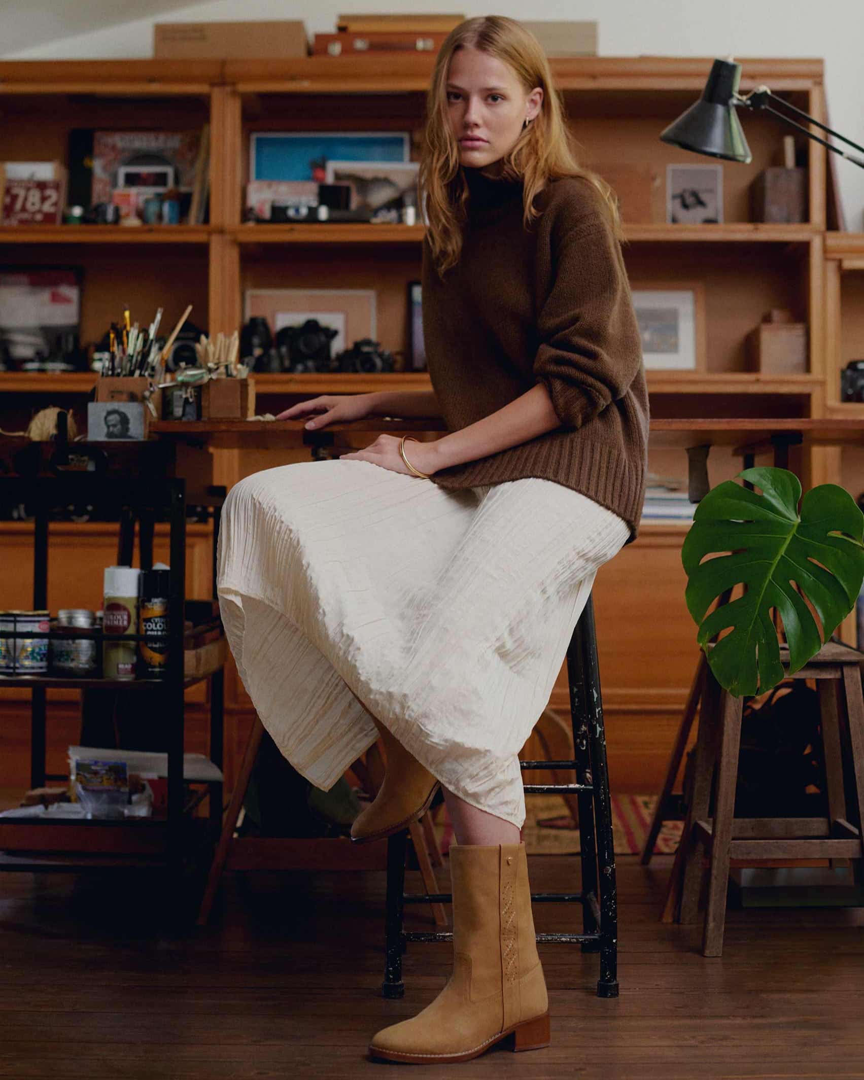 Une botte chic et décontractée, qui se joue des codes de la traditionnelle Santiag. Sa forme féminine est mise en valeur par un jeu minutieux de découpes et d'empiècements. Particulièrement confortable grâce à son talon mid, sa forme a été étudiée pour assurer un parfait maintien.