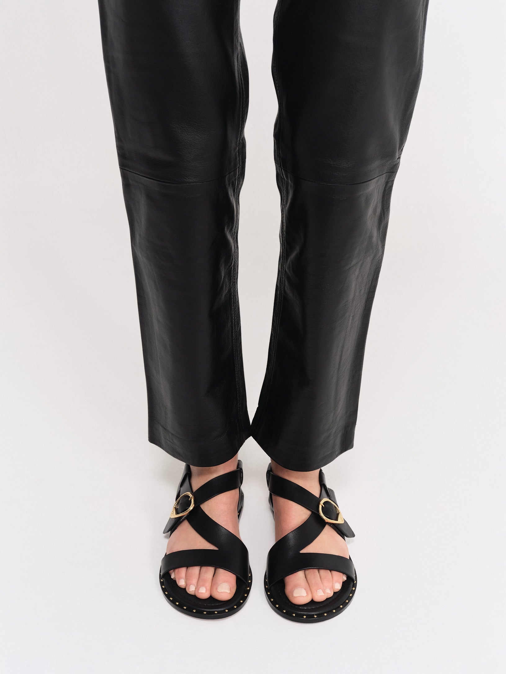 Une sandale au design épuré, soulignée par une teinture bord franc et une ligne de studs métalliques qui ponctuent la semelle. Ses brides larges enveloppent le pied avec élégance tout en assurant un confort optimal. Un essentiel du vestiaire estival.