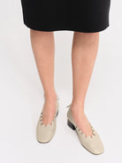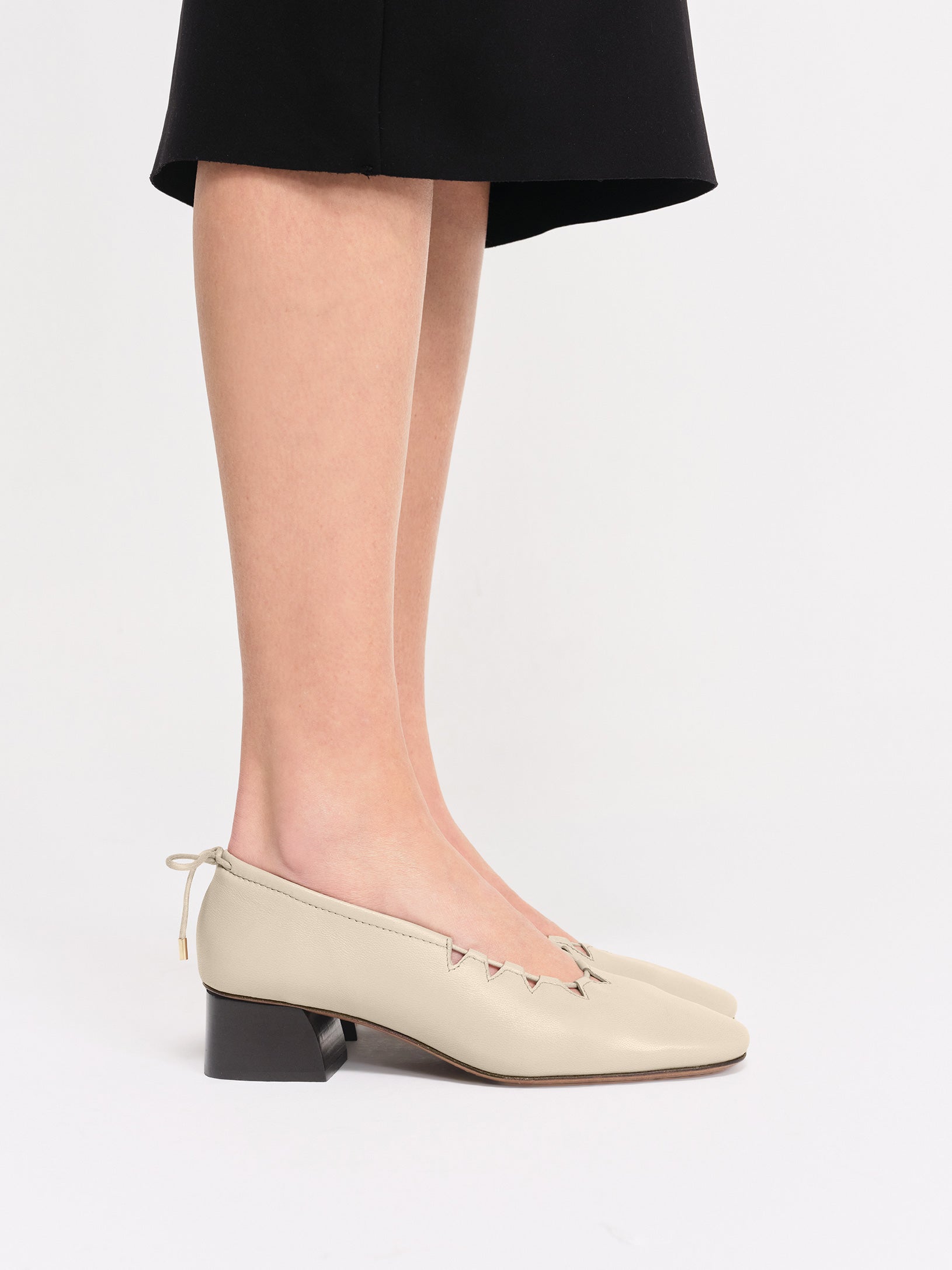 Une ballerine à talon réinterprétée avec caractère. L’harmonie subtile entre sa tige souple et son talon structuré lui confère une allure affirmée. Un lien arrière permet d’ajuster le chaussant pour un confort sur mesure. Confectionnée dans un cuir d'agneau très souple et dotée d'une semelle moussée, elle fait un parfait allié du quotidien.