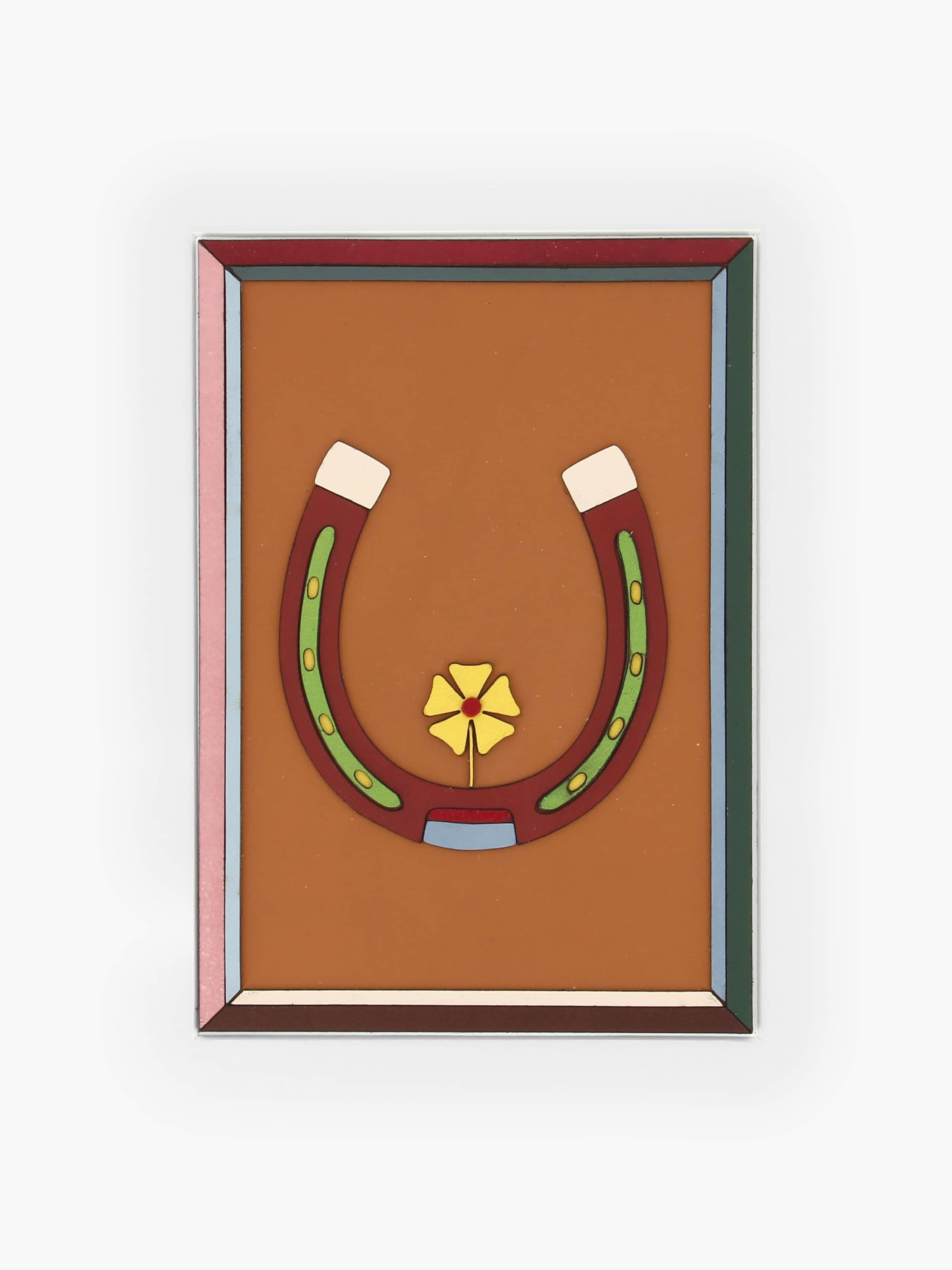 Pour cette collaboration, Lucia a créé quatre tableaux entièrement réalisés à partir de nos chutes de cuir, dans les teintes de notre collection en cours : des bruns, des terres, des nuances organiques qui portent notre signature. Des pièces à la croisée de son univers — fait de paysages abstraits — et de nos inspirations western.